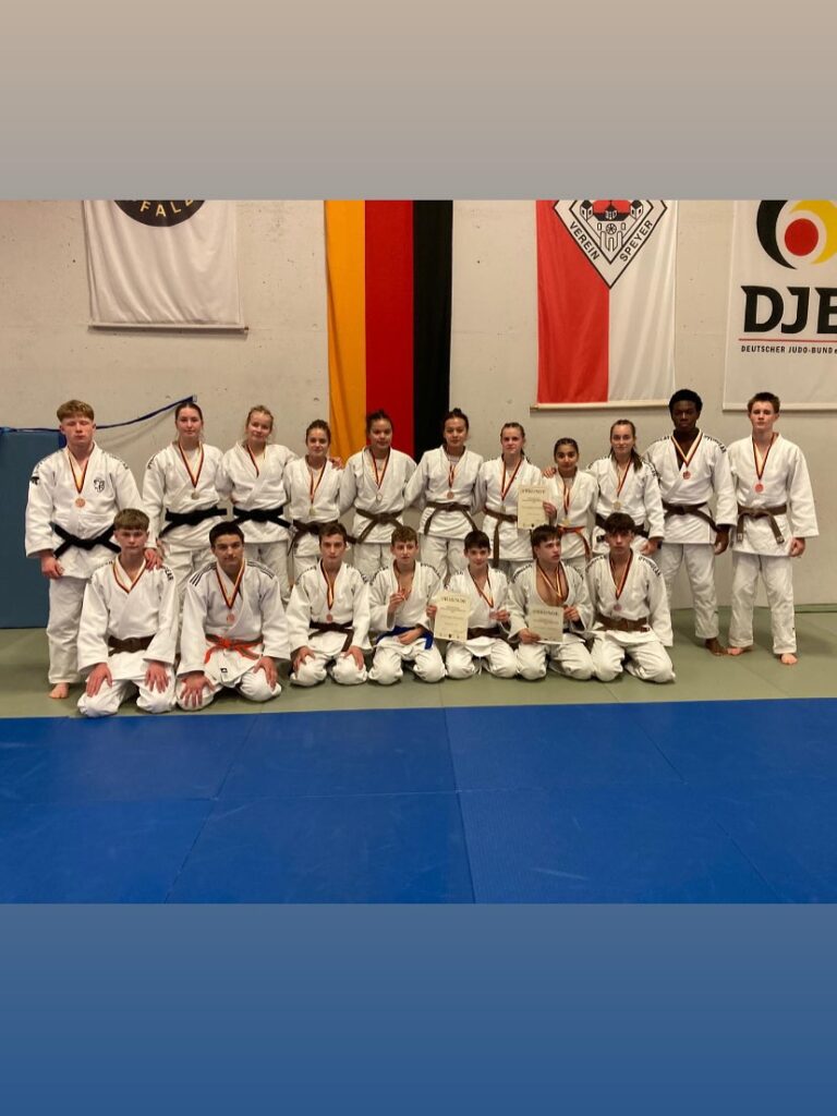 Südwestdeutsche Meister U18 wurde das Frauenteam, das den einzigen Gegner der starken Kampfgemeinschaft HTG Bad Homburg/JC Wiesbaden nach drei gewonnenen und drei verlorenen Kämpfen in der Unterbewertung bezwingen konnte. Insgesamt ein überragendes Gesamtergebnis für die beiden Vereine aus Kaiserslautern und Speyer.