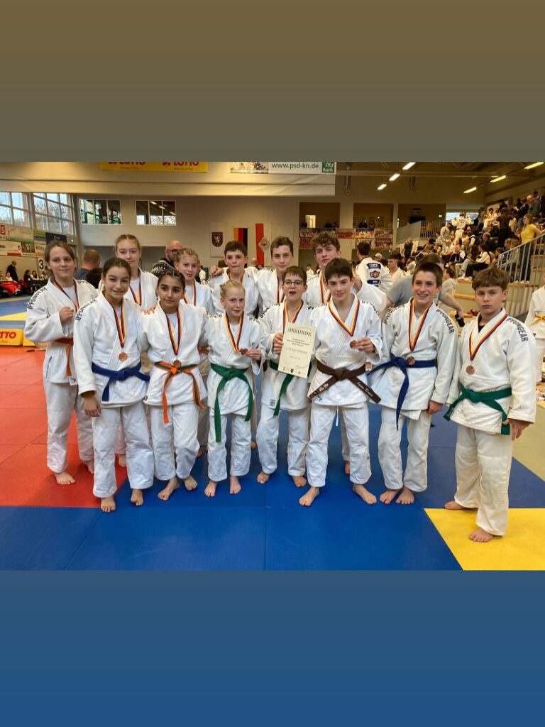 Das Mixed-Team U15 bestand aus 4 Mädchen und 4 Jungs. Beim Modus jeder gegen jeden musste das Team 5x antreten. Dreimal ging man als Sieger von der Matte, nur gegen die starken hessischen Vertreter aus Wiesbaden und Homburg musste man sich geschlagen geben. Dies bedeutete den dritten Platz und die Bronzemedaille.
